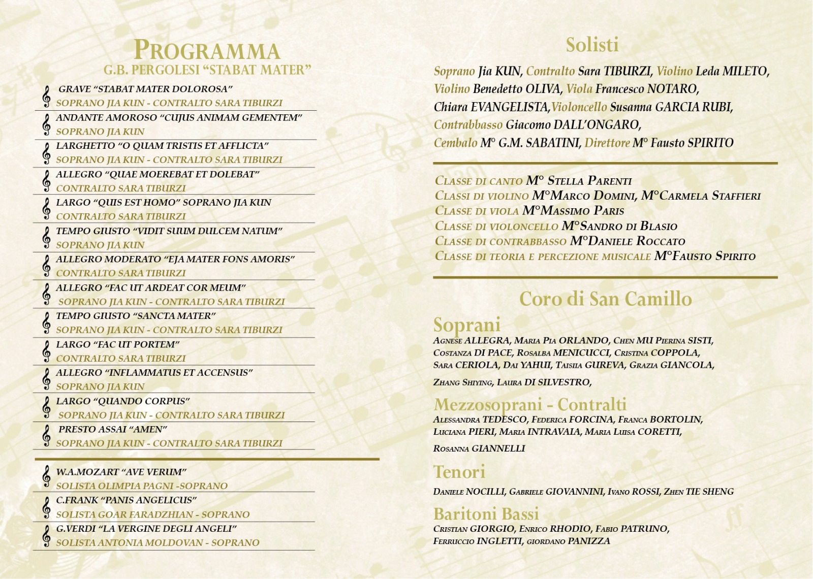 Giovedì 20 aprile 2017 alle ore 18.00, in occasione della Stagione Concertistica 2017 il Conservatorio di Santa Cecilia concerto per voci soliste ed archi Stabat Mater di G.B.Pergolesi presso la chiesa Salus Infirmorum dell'Ospedale San Camillo. Locandina1 - locandina2